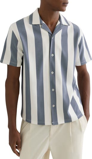 Wide cabana-inspired stripes against the stretch-enhanced fabric makes this camp shirt a getaway essential that'll see you stylishly from the pool deck to dinner at the resort.