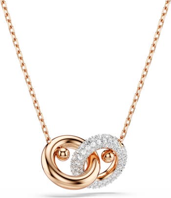 Polished and pavé crystal rings interlink in this delicate pendant necklace that symbolizes unity.
