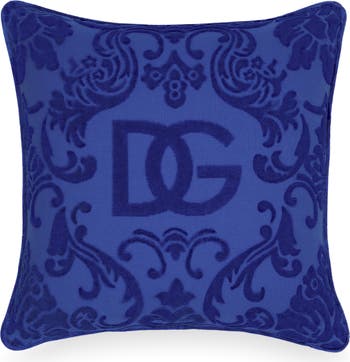 The iconic DG logo and baroque patterning are jacquard-woven into the cotton terry cloth cover on this Italian-made outdoor accent pillow with waterproof fill.