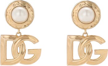 Bring the Italian label's signature glamour to any look with sleek drop earrings flaunting the iconic interlocking monogram and lustrous imitation pearls.