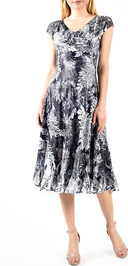 From suitcase to sensational entrance, this wrinkle-resistant combo of charmeuse and chiffon is cut into a pleated, lace-sleeve dress that will never show its mileage|Cap Sleeve Charmeuse Dress