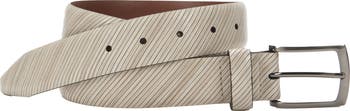 Angled, embossed stripes create a subtle ribbed effect on a contemporary leather belt that will find itself in your regular rotation.