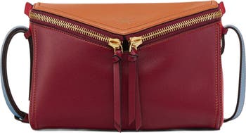 Multicolor Italian calfskin leather shoulder bag with diamond-inspired dual zip closure