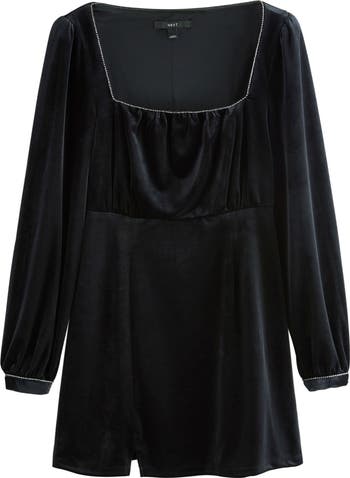 Luxe velvet and light-catching diamante trim lend a party-ready vibe to this long-sleeve minidress.