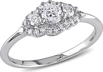 Diamond 3-Stone Halo Ring 14k