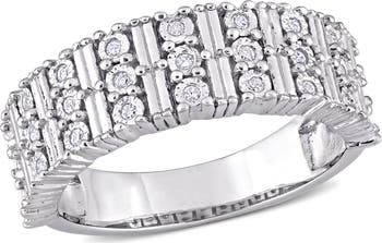 Celebrate your enduring story with the constant sparkle of this classic band. Crafted in brilliant sterling silver, this ring features an elegant row of diamonds, symbolizing unwavering devotion and infinite promise. The sleek, continuous design is perfect for layering or wearing solo. This piece offers a refined, everyday gleam, making it a meaningful and versatile foundation for any jewelry collection.