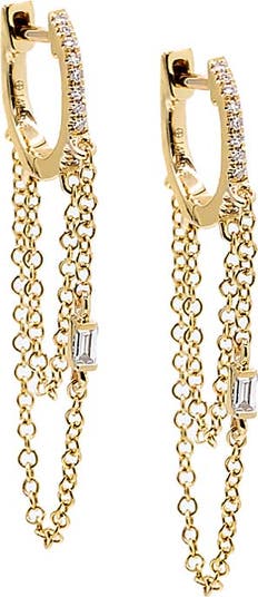 Take your diamond look to the next level of style with Adina Eden's Natural Diamond Baguette Double Chain Huggie Earring, featuring an exquisite double 14K gold chain design that dangles from a diamond-accented huggie. Rock this beauty as either a chic single or as a glamorous pair for your basic 14K earrings to shine the brightest they can out on the town.