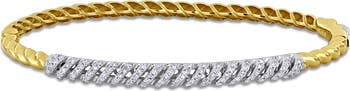 Add a touch of elegance to your ensemble with the stunning Diamond Bangle crafted in a combination of 14k white and yellow gold, measuring 7.5 inches in length. This exquisite bangle features sparkling round-cut diamonds meticulously set in a sleek and modern design. Perfect for both formal occasions and everyday wear, this diamond bangle blends the classic allure of diamonds with the contrasting tones of white and yellow gold, making it a versatile and cherished addition to your jewelry collection.