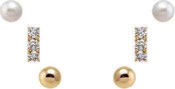 Stack it or spotlight it—the Diamond Bar, Pearls, & Ball Stud Earring Combo Set 14K always turns heads.