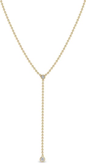 A bubbly chain necklace crafted from warm 14-karat gold in a lariat silhouette is updated with two bezel-set diamonds that subtly enhance the shine.