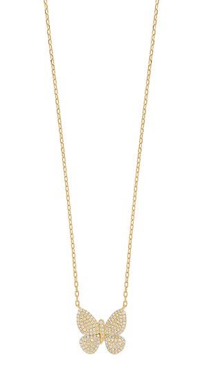 This handcrafted necklace takes flight with a butterfly pendant aglow with 149 diamonds.
