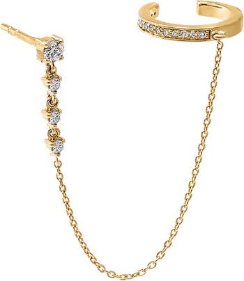 BY ADINA EDEN Diamond Chain X Pave Ear Cuff Stud Earring 14K, Main, color, 14K Gold