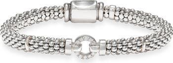 A diamond circle centerpiece brightens this sterling silver rope bracelet crafted with signature Caviar beading.