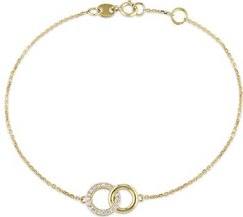 This glitzy interlocking circles bracelet features round diamonds crafted in lustrous 14-karat yellow gold. This dazzling cable chain jewelry is secured with a spring ring clasp.