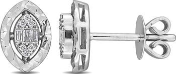 With a captivating blend of classic and contemporary design, these Diamond Marquise-Shape Cluster Stud Earrings offer a touch of elegance to any look. Crafted from the enduring beauty of 14k white gold, these earrings showcase a harmonious arrangement of round and parallel baguette-cut diamonds, creating a subtle yet enchanting sparkle. A testament to exquisite craftsmanship, these earrings are a timeless charm that effortlessly transitions from casual outings to formal occasions.