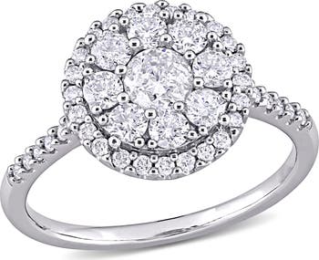 This luxurious diamond halo composite engagement ring is crafted in 10-karat white gold and features 45 round-cut, prong and buttercup-set glistening diamonds in a unique and eye-catching composite round halo bridal design. Opulence and class at a fraction of the cost, choose this exquisite diamond ring for the woman you love as you celebrate this special milestone and begin the next chapter of your lives together.
