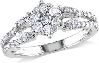 This pretty diamond cluster ring features beautiful diamonds set in 10-karat white gold. The jewelry shines with high polish.
