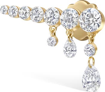 A graduated line of diamonds and floating accents bring dreamy shine to this elongated stud earring crafted from 18-karat gold.
