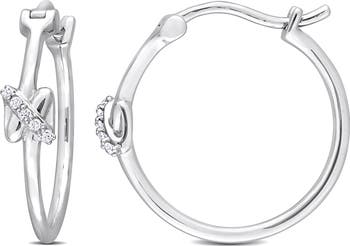 These dainty crossover design hoop earrings are crafted in lustrous 14k gold and feature a central crossover motif embellished with 10 round-cut, prong-set diamonds. Enhanced with a polished finish, these exquisite earrings are secured with hinged post back closures. A classy choice for gifting your loved ones.