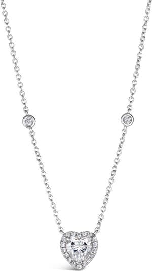 Adorn yourself with this exquisite 3 carat heart-shaped diamond crystalline necklace. A stunning central stone is elegantly surrounded by shimmering pave set crystalline gems, all gracefully suspended on a delicate fine chain, making it the perfect symbol of love and luxury.