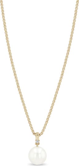 Diamond & Cultured Pearl Pendant Box Chain Necklace