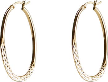 Diamond Cut Oval Hoop Earrings