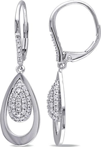 Diamond Dangle Teardrop Earrings 14k White Gold