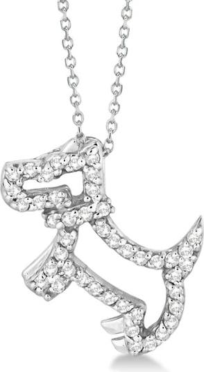 14k white gold dog-shaped pendant necklace pave-set with 0.22ct sparkling diamonds for a playful and elegant style.