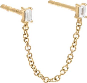 Add a touch of edgy elegance to your look with Adina Eden's Diamond Double Baguette Chain Stud Earring, featuring two 14K gold studs that are each adorned with a dazzling baguette diamond and connected with a delicate chain. Wear this as a finishing touch in your evening 14K and diamonds stack. Glitter anywhere you go!