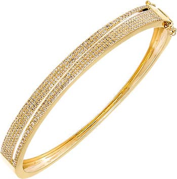 Experience unparalleled elegance with the Adina Eden Diamond Double Graduated Row Bangle, expertly crafted in radiant 14K gold and adorned with 346 brilliant round-cut natural diamonds totaling 1.17 carats. This luxurious bangle, with a classic 60mm diameter, features a double row of diamonds arranged in a graduated design that captures light beautifully from every angle. Secured with an open box clasp for comfort and durability, this exquisite piece is perfect for making a sophisticated statement, whether worn alone or stacked with other bracelets.