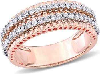 This beautiful double row eternity ring is mounted in 14-karat two-tone white and rose gold and showcases 50 round-cut, prong-set gleaming diamonds embellished by decorating the band. Choose this attractive bead eternity band to make the ultimate promise of love and watch her blush with glory.