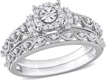 Commemorate your eternal bond with the commanding sparkle and dual brilliance of this diamond bridal set. Crafted in luminous sterling silver, the set includes an engagement ring and a perfectly matching wedding band. The design features a stunning double-row halo surrounding the center, creating a vast, magnificent field of light and maximizing visual impact. This set delivers unparalleled radiance and a sophisticated, luxurious statement of your lasting commitment.