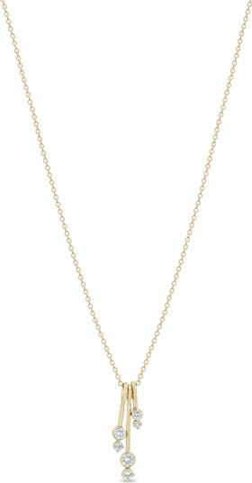A trio of asymmetric bar pendants detailed with bezel-framed diamonds centers this layering-friendly necklace made from high-polish 14-karat yellow gold.