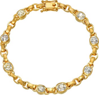 Sparkling diamond bezel-set stations glow along this delicate chain bracelet handcrafted from 18-karat gold.