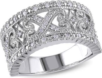 Step into an era of delicate beauty and graceful sophistication with this enchanting ring. Crafted in luminous sterling silver, the intricate filigree detailing creates a light, lace-like pattern that feels both vintage and timeless. This piece offers an exquisite sparkle and speaks to refined elegance, making it a cherished treasure for generations to come. It's the perfect way to add a touch of antique charm and brilliant shimmer to your hand.