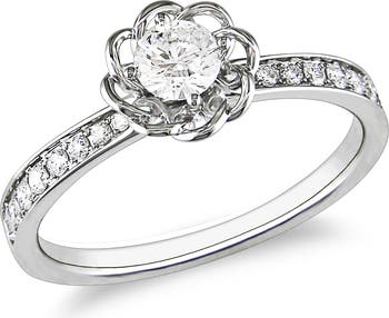 Diamond Flower Ring 14k White Gold