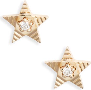 Mirror the sparkle of the night sky with these fluted star stud earrings centered with brilliant prong-set diamonds.