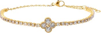 Diamond Four Leaf Clover Tennis Bracelet 14K
