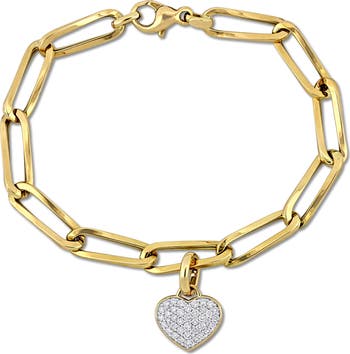This delightful bracelet, crafted in 14k gold, features diamonds incrusted in a heart charm in an oval link design. Measuring 8 inches in length, it's a charming and versatile accessory that adds a touch of timeless romance and sparkle to any outfit. The heart charm adds an extra layer of sentiment to this graceful bracelet, making it an ideal choice for those who appreciate both style and symbolism in their jewelry.