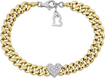 This unique bracelet combines the boldness of a Cuban link chain with the delicacy of a diamond-studded heart center, all crafted in a mix of 14k white and yellow gold. The diamonds adds a shimmering focal point, while the adjustable 6.5+1 inch length ensures a perfect fit. It's a modern take on romantic jewelry, blending strength with sparkle.