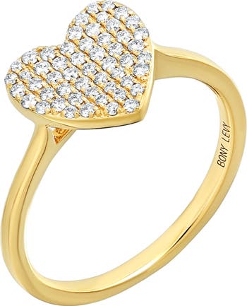 A grand total of 53 pavé diamonds sparkle atop a romantic heart-shaped ring handcrafted from polished 18-karat gold.