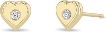 Romantic shine defines 14-karat-gold stud earrings showcasing diamond-centered hearts.