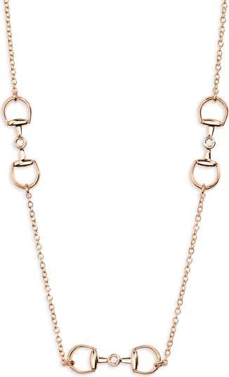 House-signature horsebit hardware centered with round bezel-set diamonds segments out this Italian-crafted necklace made of high-polish 18-karat rose gold.