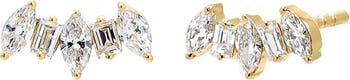 BY ADINA EDEN Diamond Marquise X Baguette Curved Stud Earring 14K, Main, color, 14K Gold