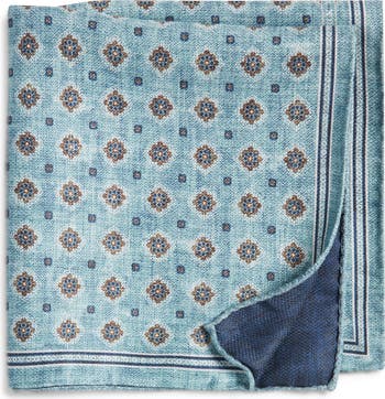 A loose silk weave patterned in diamond-shaped medallions brings casual elegance to a pocket square that brings polish to any semiformal look.