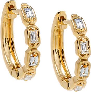 Diamond Multi Emerald Cut Bezel Huggie Earring 14K