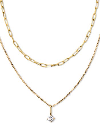 Your new favorite way to layer. This diamond necklace set is crafted in solid gold with a waterproof design that’s made to last a lifetime. Featuring a classic chain necklace and paperclip chain with a lab-grown diamond charm, this trio is a chic set you can wear everyday.