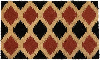 Welcome guests with this ornamental doormat! It features an orange and black diamond design with cream accent. This doormat has been made for long-lasting durability and color. Product Features: Doormat accented with a decorative geometric diamond pattern Non-skid durable backing which helps to keep your doormat securely in place Recommended for both indoor or outdoor use Care instructions: rinse with hose and air dry Dimensions: 17.75"H x 29.5"W x .5"D Material(s): rubber bottom and coir fibers