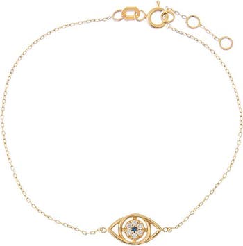 Diamond Pave Colored Evil Eye Bracelet 14K