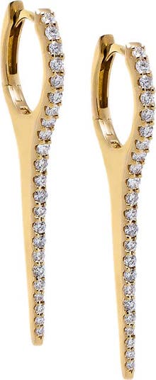 Diamond Pave Large Elongated Spike Huggie Earring 14K